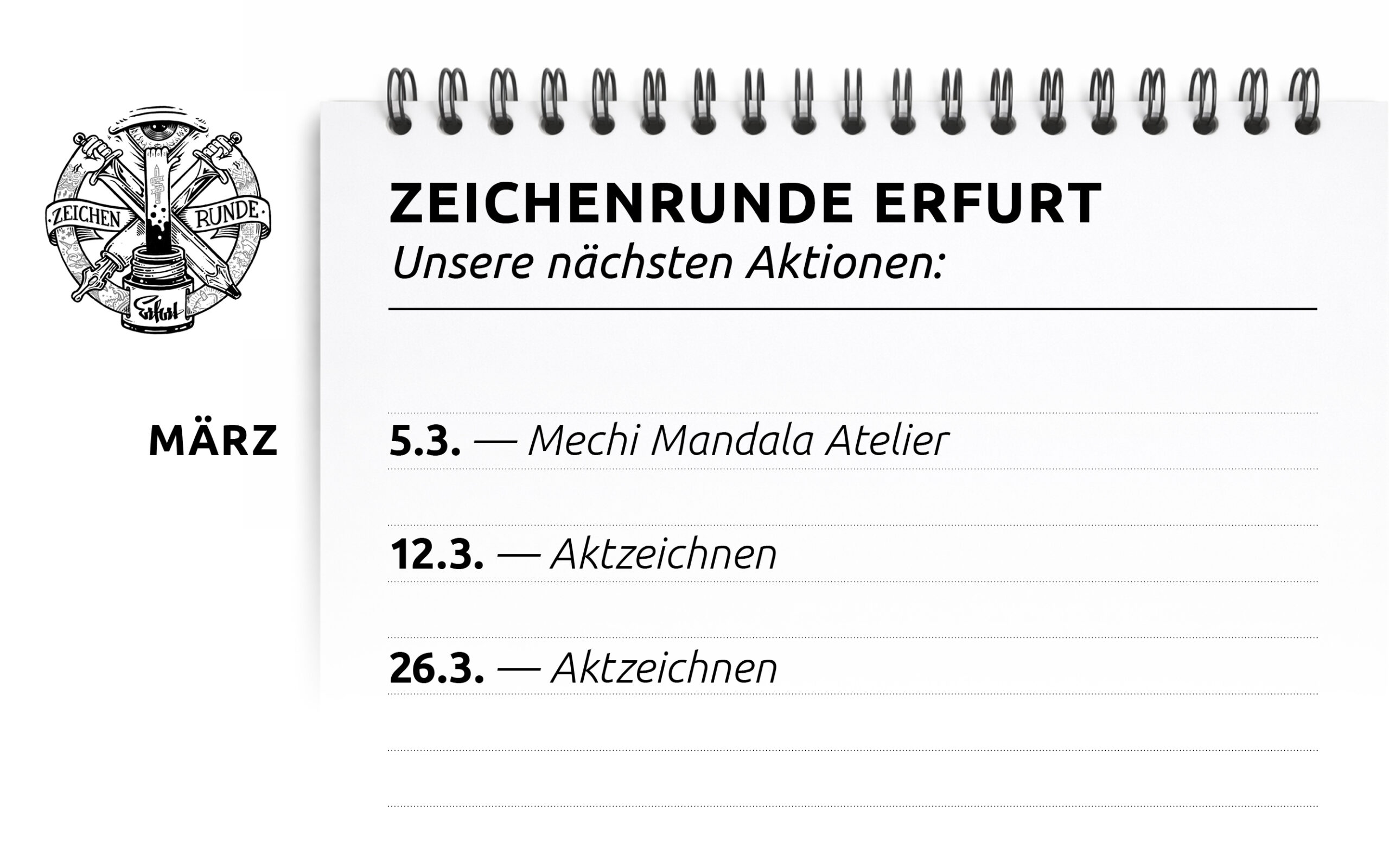 Wer schon mal seinen Kalender mit den nächsten Zeichenrunden füllen möchte …