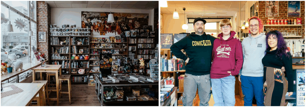 Neben Information, Beratung und Netzwerken bietet der Laden außerdem in Erfurt lebenden Künstler:innen die Möglichkeit, ihre Werke zu zeigen – zeitweise und absolut unproblematisch. Die Holzwand, an der also auch eure Zeichnungen hängen könnten, ist durch die raumhohen Fenster selbst von der Straße aus einsehbar und wird auch außerhalb der Öffnungszeiten des Ladens ausgeleuchtet.